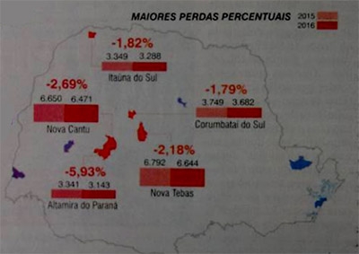Jornal Folha de Londrina publicou matéria sobre os municípios do Paraná que estão perdendo população. Isso com base na estimativa do IBGE que saiu semana passada. Detalhe: das cinco cidades que mais perderam moradores, três são da região: Corumbataí do Sul (-1,79%), Nova Cantu (-2,69%) e Altamira do Paraná (-5,35).