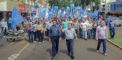 Faltando um mês para a eleição, os candidatos a prefeito acelaram suas campanhas. O PPS de Tauillo Tezelli promoveu neste sábado passeata por ruas do centro. O secretário de Estado Douglas Fabrício (Esporte e Turismo) participou. Repare que o partido agora está azul e não mais vermelho e amarelo.