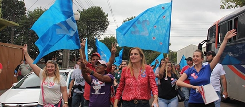 Já o PR de Regina Dubay passou o sábado pecorrendo bairros da cidade. O partido manteve o azul nas bandeiras. Portanto, toda atenção nos números, porque as cores...