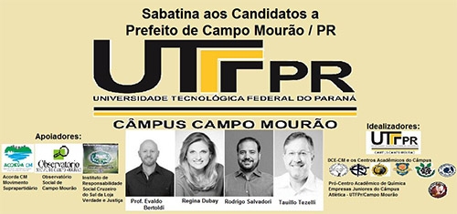 Os quatro candidatos a prefeito de Campo Mourão vão participar de uma sabatina no câmpus da UTFPR.