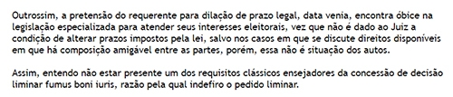Ele queria condicionar prazo ao julgamento do recurso pelo TRE.