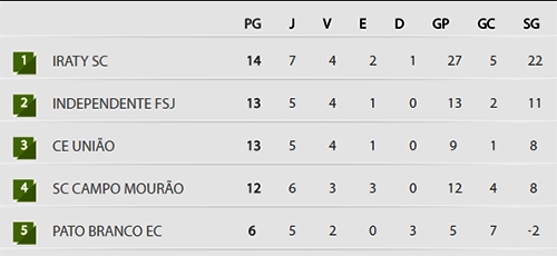 O time 12 pontos e segue em quarto lugar, mas agora a apenas dois pontos do líder Iraty, que tem 14.