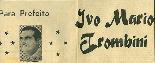 Propaganda de Ivo Mário Trombini, que foi candidato a prefeito de Campo Mourão em 1963. A campanha ficou famosa pela presença em comício do ex-presidente Juscelino Kubitschek, em apoio a Trombini. O vencedor, no entanto, foi o advogado Milton Luiz Pereira.