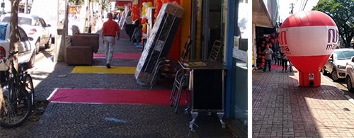 Tem sofá? Tem! Tem colchão? Tem! Tem cadeira de área? Tem! Tem fogão a lenha? Tem? Tem balão? Balao?! Tem também! Tem de tudo pelas calçadas no centro de Campo Mourão. A cada dia aparece um item diferete. Deve ajudar a vender mais, mas fica feio e atrapalha os pedestres. No mais, sem querer gorar, mas Ciudad Del Este começou assim...