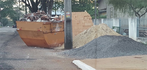 “Na av. João Bento, caçamba sem adesivo refletivo e calçada completamente obstruída”.