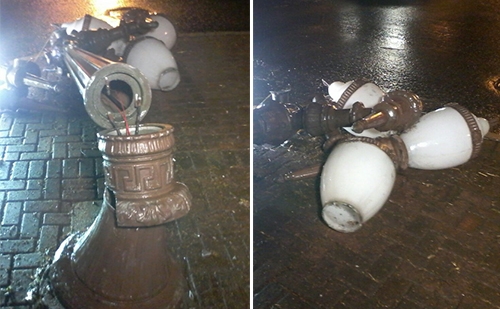 Mais um poste republicado “apareceu” caído em Campo Mourão. Foi nesta segunda-feira à noite, no calçadão do Santuário da Vila Urupês (calçadão que virou estacionamento, diga-se de passagem). Desta vez foi um postes dos grandes, com cinco luminárias.