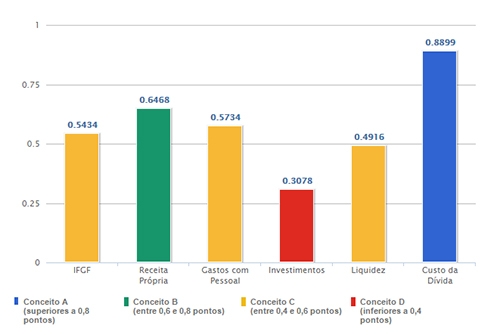 A Firjan avalia cinco itens – receita própria, gasto com pessoal, investimentos, liquidez e custo da dívida.