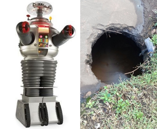 A foto foi enviada por internata, mas quem alerta é o simpático e inesquecível Robô, da série “Perdidos no Espaço”. Tem um buraco na calçada na esquina das avenidas Miguel Luiz Pereira e Comendador Norberto Marcondes. Alguma dúvida que o Robô, se passasse por ali balançaria os braços e gritaria: “Perigo! Perigo! Perigo!”?...