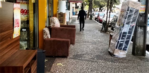 Primeiro teve loja que colocou um algum item em oferta no cantinho da calçada. Depois colocou mais um e mais um. De repente isso virou prática de outras lojas. E não mais do que de repente, já apareceu móveis expostos até junto aos postes. Não é por nada, não, mas Ciudad Del Este, no Paraguai, começou assim...