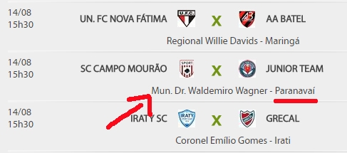 A princípio a federação tinha anunciado que a estreia contra o Junior Team, de Londrina, seria às 11h de domingo, em Campo Mourão.