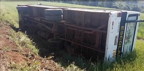 Um ônibus do transporte escolar de Campo Mourão tombou por volta das 12h desta quinta-feira próximo à ponte sobre o rio da Várzea, entre o Barreiro das Frutas e a comunidade Fazenda Boa Esperança. Cinco estudantes adolescentes estavam no veículo, mas nenhum se feriu. O motorista teve escoriações num braço.