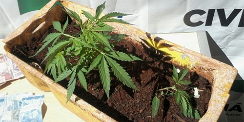 Vaso de maconha – Operação da Polícia Civil prendeu sete pessoas em Campo Mourão por drogas e armas de fogo. Até um vaso com pé de maconha foi apreendido.