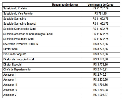 O “Órgão Oficial” de Campo Mourão trouxe nesta sexta-feira a relação dos salários de todas as funções existentes na prefeitura. Tem o valor no início e no final da carreira. Há também um quadro com os subsídios do prefeito – R$ 21,2 mil – do vice-prefeito ("setecentão"), dos secretários e dos demais cargos em comissão. Detalhe: de diretor pra baixo é possível gratificações. Portanto, pra quem já está de olho num “carguinho” a partir de janeiro...