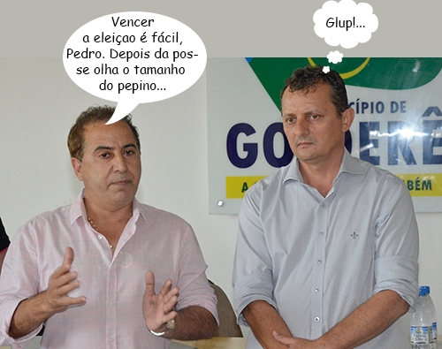 O clique é desta semana, quando aconteceu a primeira reunião da transição política em Goioerê. Foi para apresentação das pessoas que farão parte dos trabalhos. O prefeito Beto Costa (DEM) e o prefeito eleito Pedro Coelho (PPS) foram só troca de gentilezas. Costa apoiou o ex-vereador Betinho Lima (PSD).