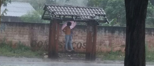 “Dê uma olhada no ponto de ônibus da av. John Kennedy, no Lar Paraná. A foto é da manhã desta quarta-feira chuvosa”.