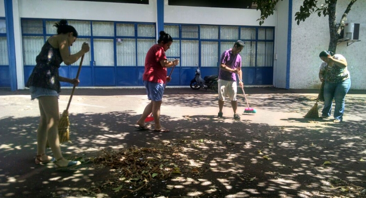 Estudantes que ocupam a Unespar de Campo Mourão fazem mutirão para limpar o estacionamento do câmpus. O flagra é desta sexta-feira pela manhã. O câmpus foi ocupado há 20 dias. A “greve estudantil” tem várias reivindicações, como a cobrança por repasses para a instituição, que vem sofrendo há dois anos com cortes do governo do Estado.