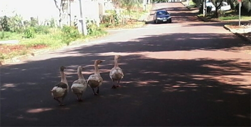 Quatro gansos resolveram passear na rua São José. Possivelmente estavam conhecendo os novos vizinhos do Cidade Alta 2”. Rafael Silvestrin