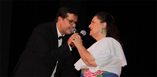O espetáculo musical “Ontem ao Luar - Uma Canção de Amor”, da Secretaria de Cultura de Goioerê, encerrou o 14º Festival de Teatro de Campo Mourão. O secretário de Cultura de Goioerê, Pedro Marques, foi um dos cantores do evento. Na cena acima, ele faz dueto com Vera Ribeiro de Carvalho, que foi secretária da pasta em outra administração goioerense. Marques também dirigiu o espetáculo.