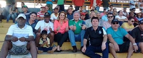 A prefeita Regina Dubay foi neste domingo ao estádio Roberto Brzezinski acompanhar o jogo entre América e Luiziana. Ficou ao lado do ex-prefeito Nelson Tureck, que já foi estrela do Luizina, mas agora é “americanista” deste criancinha...