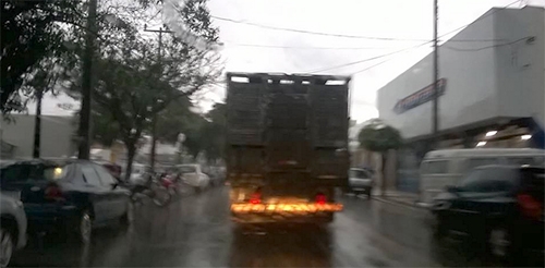 “Até caminhão de boi se acha no direito de passar pelo centro de Campo Mourão. Esse aí foi flagrado nesta sexta-feira, por volta das 14h30, na av. Irmãos Pereira”.