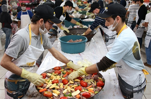 Ao todo são 4.500 kg de carne e 4.800 kg de 11 tipos de legumes.