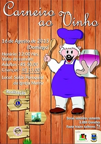 Quem disse que não haverá carneiro ao vinho, este ano, em Peabiru? Se a prefeitura não vai fazer o tradicional almoço, o Lions, a Maçonaria e a Igreja Católica já avisaram que vão. Será um almoço menor, para duas mil pessoas, mas no mesmo local, o salão paroquial. O prato típico será servido dia 16 de agosto, com convites à venda por R$ 30. A prefeitura entra como apoiadora do evento.