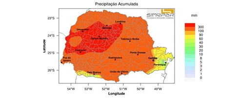 Segundo o Simepar, foram 371 mm, quase cinco vezes acima da média do mês, que é de 76 mm.