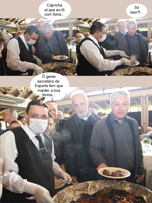 Os cliques são deste domingo, na Festa Nacional do Carneiro no Buraco. O secretário de Estado Douglas Fabrício (Esporte e Turismo) almoçou na barraca do Sindicato Rural, onde só entra convidado especial. O vice-presidente da Coamo, Claudio Rizatto, também está na foto. E que fique claro: como secretário “de Turismo”, Douglas pode comer à vontade...