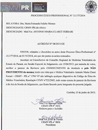 Para o CRMV, no entanto, o veterinário responsável “não infringiu qualquer dispositivo do código de ética”.
