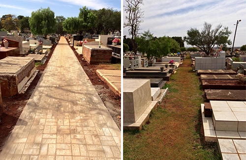 Lembra que, ano passado, a prefeitura começou a colocar pêiver e grava em ruas do Cemitério São Judas Tadeu? Um ano depois o trabalho continua. As ações aconteceu na chamada “parte mais antiga”, que fica à esquerda do portão principal. Mesmo “antiga”, essa parte sempre foi no terrão. A ideia é levar a melhoria também para o “outro lado”, mas ainda há muito a ser feito.