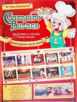 ...para o prato típico de Campo Mourão ser servido na 25ª Festa Nacional do Carneiro no Buraco. O cartaz de hoje é da 20ª edição do evento, realizada de 29 de junho a 4 de julho de 2010. Pela segunda vez, o carneiro foi servido no primeiro domingo de julho e não no segundo, como diz a lei municipal.