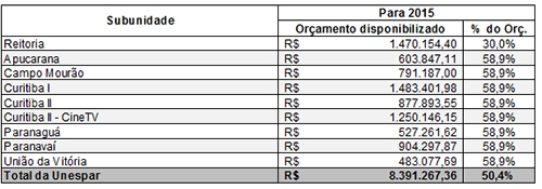 Segundo ele, para 2015 a Unespar precisava R$ 13,9 milhões.