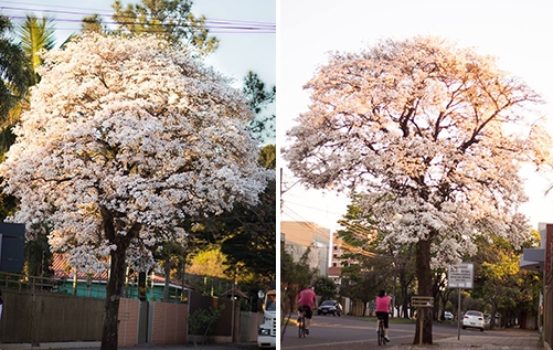 Nesta época do ano não há quem não fique de boca aberta ao passar pela av. Goioerê e se deparar com um dos pouquíssimos ipês brancos que existe na cidade. E cá pra nós: melhor admirar mesmo, afinal, vai que uma hora o “massacre da serra elétrica” passa por ali, né?...
