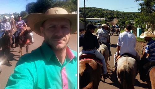 O prefeito de Barbosa Ferraz, Gilson Cassol, participou no fim de semana da Cavalgada da Amizade. Entre um trote e outro, não perdeu a chance de fazer um selfie e postar nas redes sociais. Sabe como é que é, nos dias de hoje se não sair no Facebook ou no Instagram ninguém acredita. E vai também pra Boca Santa, de brinde...