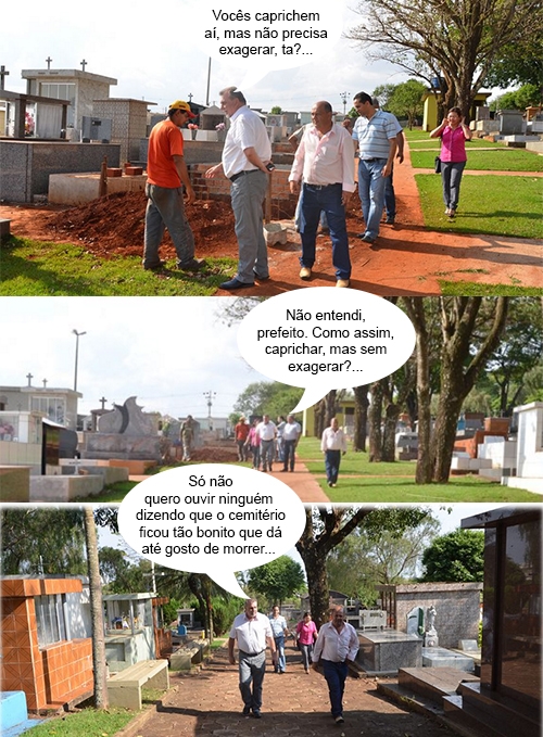 Os cliques são de Ubiratã, onde o prefeito Baco Duarte foi conferir as melhorias no Cemitério Municipal para o Dia de Finados, no próximo dia 2. Sabe com é, morto não vota, mas a parentaiada...