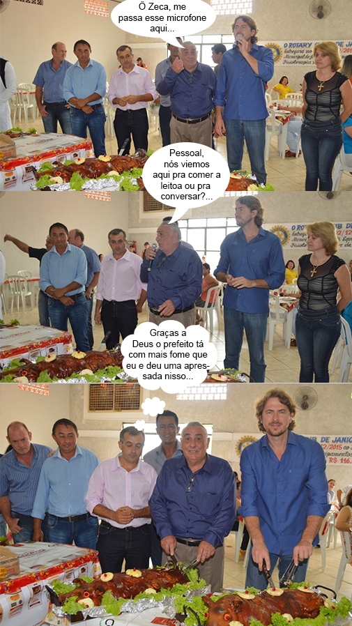 Os cliques são deste domingo, na abertura da Festa da Leitoa Fuçada, em Janiópolis. O prefeito Lola Poera e o deputado federal Zeca Dirceu fizeram o “corte oficial”. Vereadores acompanharam, como José Cláudio “Pé de boi”, que completa o balãozinho do dia.