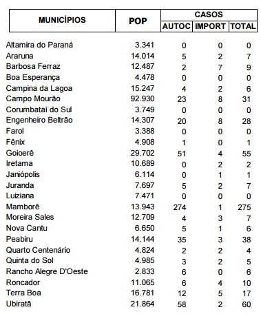 Campo Mourão se manteve com 31 confirmações.