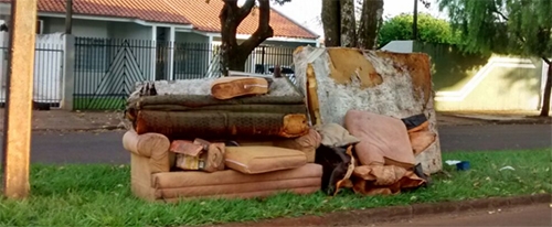 Av. Jorge Walter, entre as ruas Panambi e Rocha Pombo. Veja que beleza ficou o canteiro central, com sofás e colchões velhos.