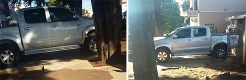 “Por onde o pedestre passa? A caminhonete esteve o dia inteiro atravessada sobre a calçada, no jardim Alvorada”.