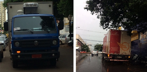2) Caminhão para em fila dupla para fazer descarga na rua São Paulo, esquina com av. Capitao Índio Bandeira, nesta quinta-feira pela manhã.