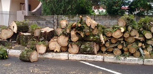 “Ela andava meio sumida, mas voltou com tudo. Duas árvores cortadas na rua Araruna, centro de Campo Mourão. Será que precisava? Cadê as outras árvores plantadas antes do corte?”