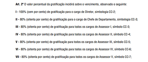 Por exemplo: a partir de agora só os diretores (CC-2) terão gratificação de 100%.