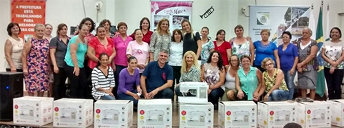 O auditório da Casa da Música ficou lotado de mulheres, quinta-feira, para a abertura das atividades do ano dos 32 clubes de mães de Campo Mourão. Houve sorteio de brindes e entrega de máquinas de costuras aos clubes. A prefeita Regina Dubay e a vereadora Nelita Piacentini estavam por lá. Homem tinha um só, o vereador Edilson Martins.