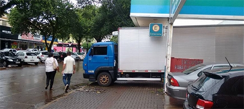 “Por volta das 11h20 desta segunda-feira, portanto já fora do horário permitido, caminhão fica atravessado na calçada para carga de descarga. Isso em plena av. Capitão Índio Bandeira. Pedestres tiveram que desviar pelo meio da rua”.