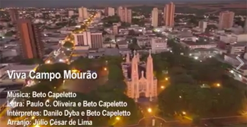 “Eu sou pé vermelho. Eu sou do Paraná. O amor é a luz desta terra e tudo que ela me dá”. É assim começa a música “Viva Campo Mourão”, de Beto Capeletto, que está disponível em vídeo no Facebook. O próprio Capeletto interpreta ao lado do ex-The Voice Danilo Dyba.