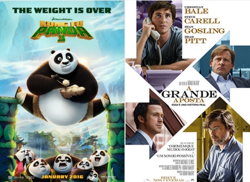 Dois novos filmes entram em cartaz nesta quinta-feira no Cinemax’s. Às 19h30 tem a animção Kung Fu Panda 3, em versão 3D dublada. Já às 21h30 tem a estreia de “A grande aposta”, com Christian Bale, Steve Carrel e Brad Pitt. A sessão será em 2D legendada. Ingressos antecipados na Fiorella e no site www.cinemaxs.com.br
