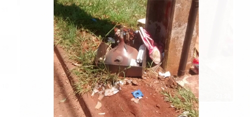 Resto de monitor jogado no canteiro central da av. Guilherme de Paula Xavier, nas proximidades da escola municipal Urupês.