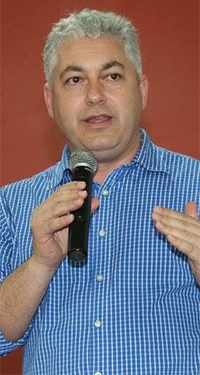 Sidney Casarin, presidente do PSB de Campo Mourão, ao anunciar a pré-candidatura do vereador Pedrinho Nespolo a prefeito; nesta quinta-feira, durante encontro regional do PSB.
