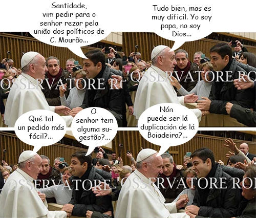 Exclusivo! Boca Santa descobriu o teor da conversa do padre Alfredo Rafael Belinato Barreto, de Campo Mourão, com o papa Francisco, no rápido encontro que eles tiveram quinta-feira, durante evento no Vaticano. Olha aí as fotos do L"Osservatore Romano. Brincadeirinha, brincadeirinha, brincadeirinha...