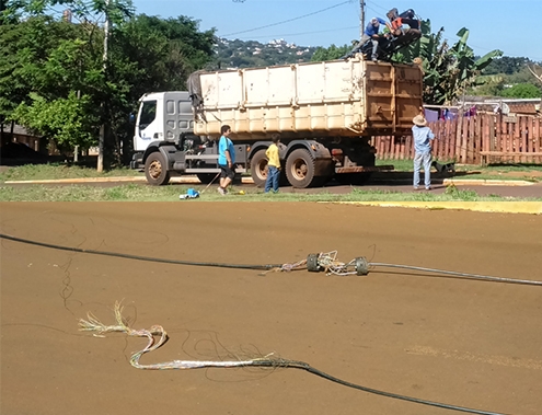 “Um caminhão derrubou cabos de linhas telefônicas no jardim Cidade Nova entre a rua Hideji Kobayashi e Avenida das Torres”.